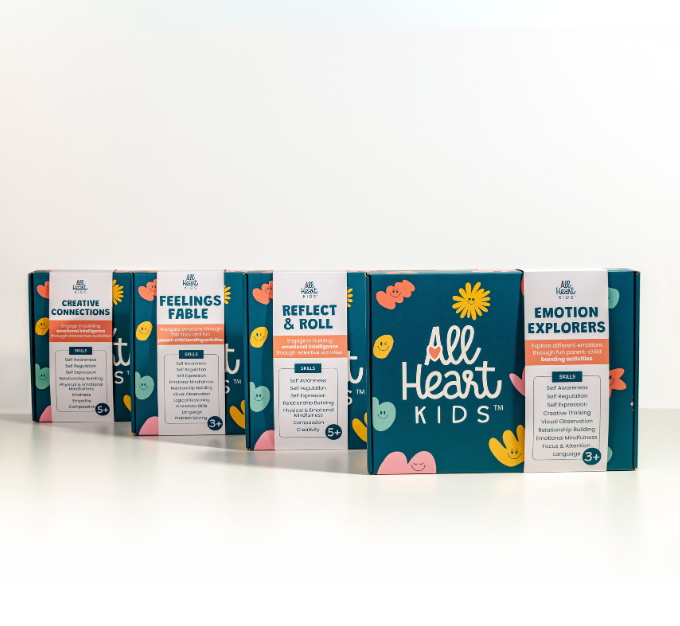 All Heart Activity Boxes and Books are packed with engaging, screen-free activities that bring emotional learning to life. Each box is carefully crafted to spark joy, strengthen the parent-child bond, and turn just 10 minutes of play into powerful lessons on kindness, resilience, empathy, and self-expression. With All Heart, you’re not just playing, you’re giving your child skills that last a lifetime.